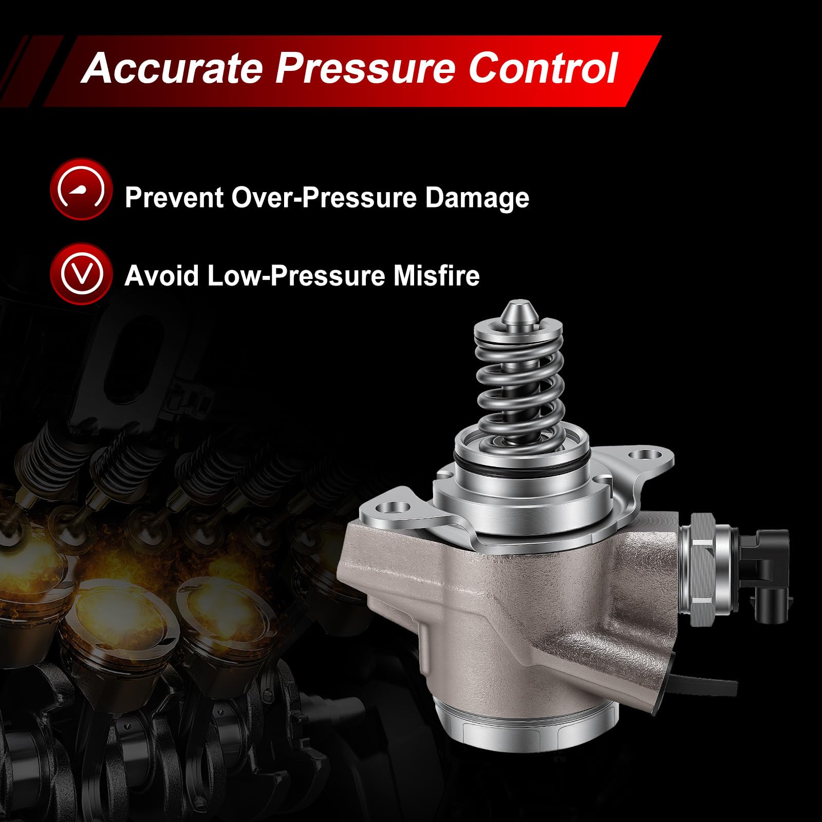 - 【Durable Materials】The core components of this High-Pressure Fuel Pump are engineered for exceptional durability. Built with high-hardness materials, they maintain reliable operation even under continuous high-pressure, high-speed conditions—delivering outstanding wear resistance. The pump housing is crafted from forged aluminum alloy, providing excellent structural strength to withstand shocks and vibrations from demanding road conditions while protecting internal precision components.