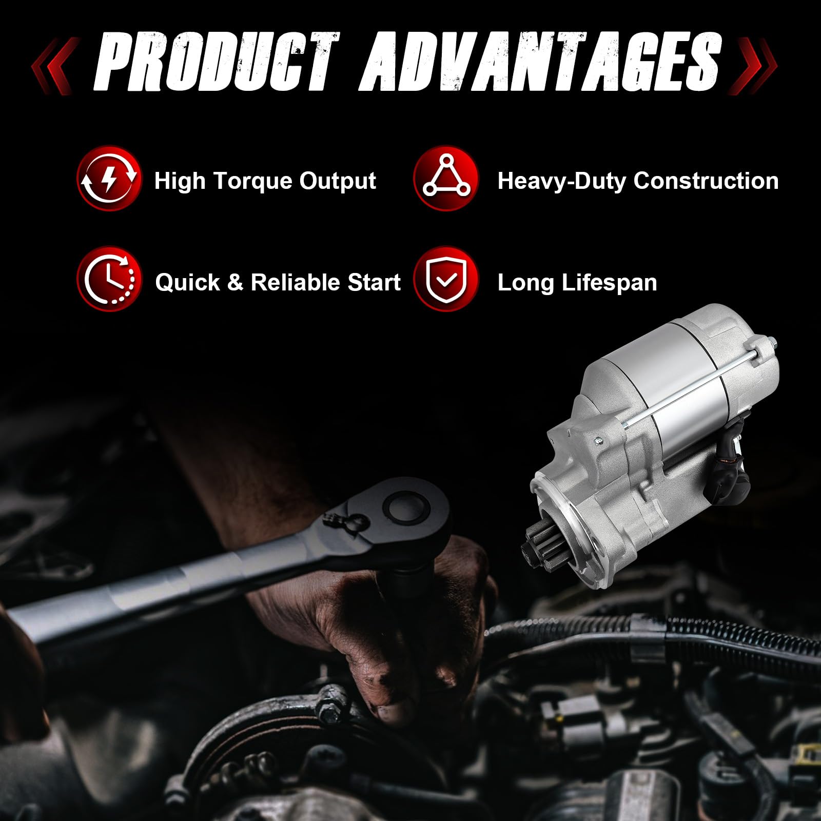 - [Higher Performance]: Our 410-52265 Starter Motor integrates high-performance magnets or optimized excitation coils to deliver enhanced torque output, enabling rapid startup while maintaining a compact, integrated structure that simplifies installation and adapts seamlessly to space-constrained applications