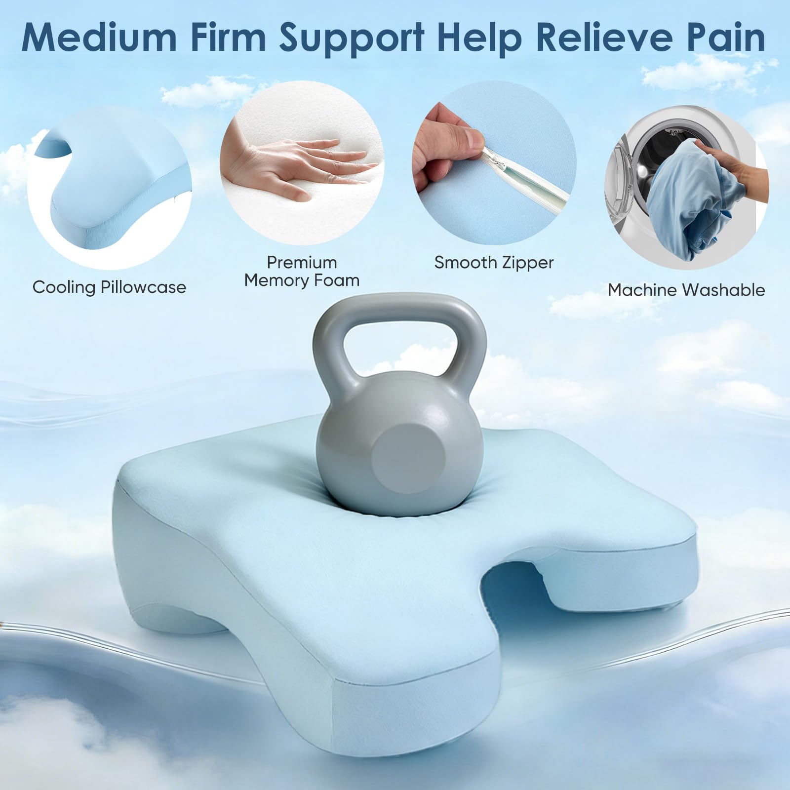 - 🔹 RELIEVES SHOULDER PAIN & ARM NUMBNESS – Designed for side sleepers suffering from rotator cuff pain, frozen shoulder, or waking up with "asleep" arms. The 3-arm hole design allows your arm to rest naturally without bearing the weight of your head and body, promoting better blood circulation and reducing pressure on your shoulder joint. Wake up refreshed and pain-free.