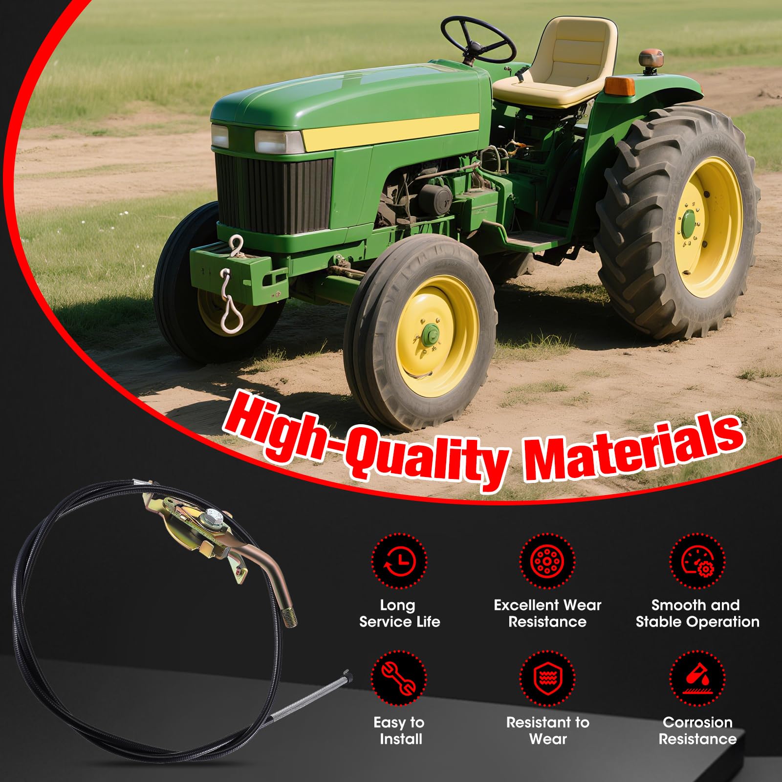 - Durable Materials: Crafted from premium steel and iron, this throttle cable offers outstanding tensile strength and corrosion resistance. Designed to withstand the harshest conditions, it resists wear and deformation, ensuring consistent, reliable performance even under extreme temperatures and heavy use.